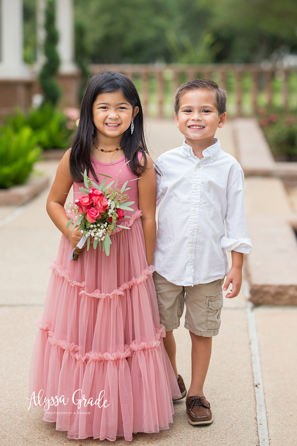 For Ashton's princess-themed 5th birthday, she requested her mom get her a pretty floor length dress. She wore it to Chuck-E-Cheese, but I thought it would be fun if she got to show it off again, and that's where the idea for this shoot was born. I got the idea online for Elliot to surprise her with flowers. I made the bouquet myself - a first for me! - to match Ashton's dress. I'm pretty proud of it.