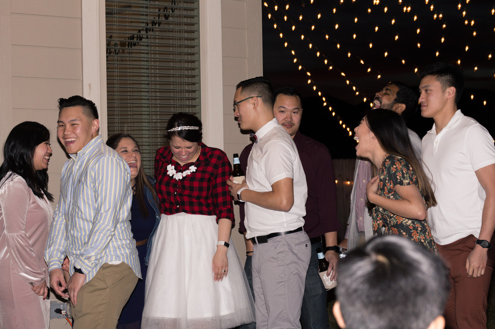 "Let New Adventures Begin" their front door mat reads. After being together for ten years, Tara and Steven are embarking on a new chapter of their lives as a newly wed couple. I joined the bride and groom at their home where family and friends gathered to celebrate their marriage with BBQ, beers, and some touching toasts to the happy couple. Tara's laughter and joyful smile lit up the whole home. The weather forecast that day had threatened to be grey and windy; the yard soft from recent rains. But Steven optimistically strung lights up over the backyard, a labor of love, and the clouds gave way to the most incredible sunset for the couple as they finished their first dance. It was so romantic. Congrats Tara and Steven!
